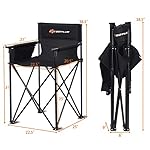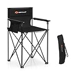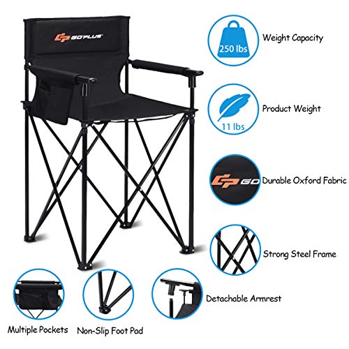 Goplus Folding Camping Chair, Outdoor Portable Beach Chair Heightened Design w/Detachable Armrests, Storage Pouches & Carrying Bag for Fishing, Picnic, Lawn (Black, 250LBS Weight Capacity)