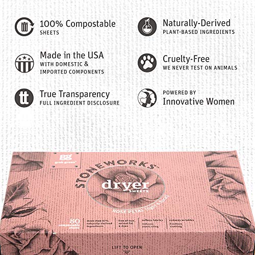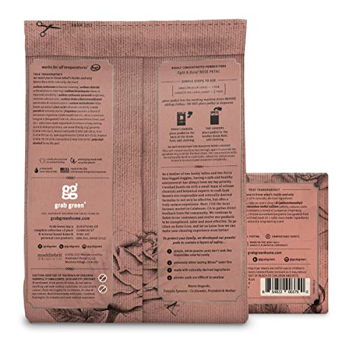 Contains: 1- 50 Pod Bag of Grab Green Stoneworks Rose Petal Laundry Detergent Pods and 1- 80 Sheet Box of Grab Green Stoneworks Natural, Compostable Rose Petal Dryer Sheets