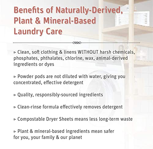 Naturally Effective: Our Pods are specifically formulated to cut through dirt leaving your laundry clean and fresh. Follow up with our dryer sheets that naturally soften and reduce static cling and wrinkles without harsh chemicals