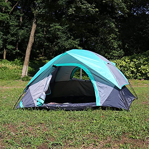 Wind-Resistant and Waterproof: The camping tent has a novel design, a double-layer tourist tent with a drape outside and inside. It is suitable for 4 seasons in more than a few regions. It adopts a 7.9mm+6.9mm fiber pole cross structure and has good wind resistance. The outer and inner tents of the tent are made of 190T polyester waterproof cloth, and the floor mats are made of 110G PE. The double-sided stitched seams are perfectly sealed, which improves the waterproof performance and assists in keeping it dry.