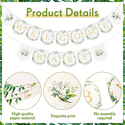 Greenery Baby Shower Banner Eucalyptus Leaves Welcome Baby Banner Sage Green Baby Shower Decoration for Boy Baby Shower Decor Welcome Sign Paper Pennant Hanging for Girl Gender Neutral