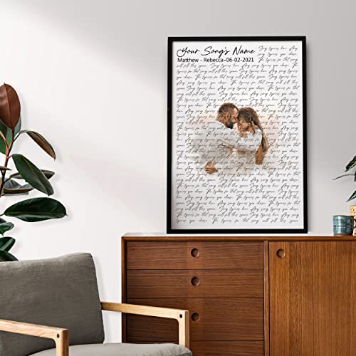 H-DEWALL Customized Song Lyrics Canvas Framed Gifts For Wife Wedding Song For Living Room Decorations Personalized Music Poster Designer Pictures Wall Art With Song Quotes Decor (Wall Canvas For Bedroom)