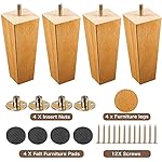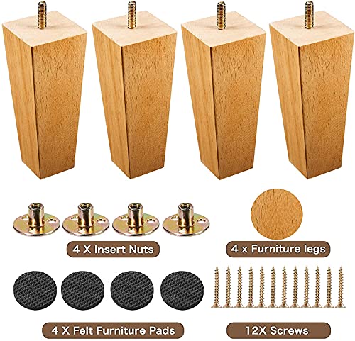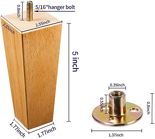 HANMFEI 5 in Wood Couch Sofa Legs, Furniture Legs Sets of 4, Square Mid-Century Rubber Sofa Legs Replacement for Couch Sofa Recliner Dresser Chair, Include Mounting Attachment Plates