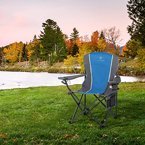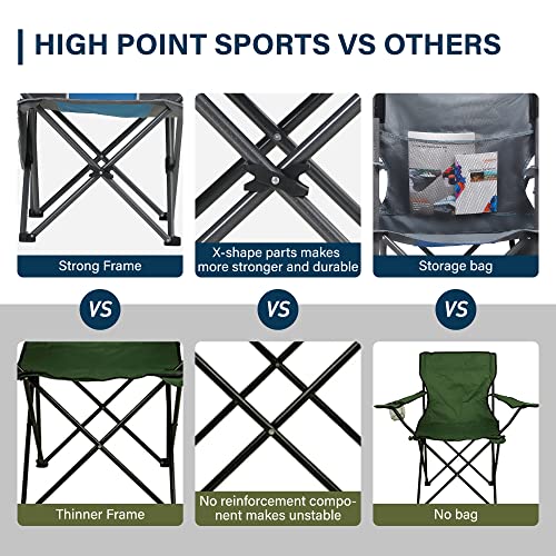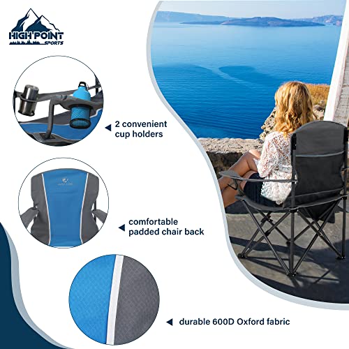 HIGH POINT SPORTS Portable Camping Chair, Heavy Duty Outdoor Folding Chair with Armrest, Foldable Camp Chair with Cup Holder for Camping, Support 350 LBS, Blue-Gray