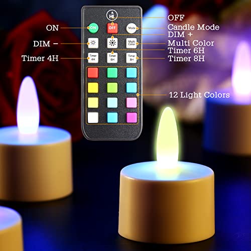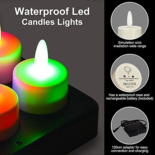 idyl light Rechargeable Tea Lights Candles with Remote & Timer,100 Hours Flickering Working, Waterproof Led Flameless Candles Tealights for Centerpiece Home Wedding Party Decoration,RGB, 6 Pack