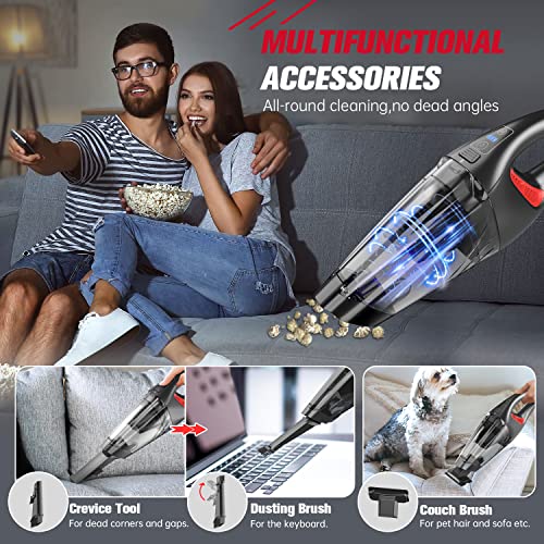 ✅ DUAL LED LIGHT & LIGHTWEIGHT: Cordless handheld vacuums get rid of bulky tangled cords, making them easy to carry and store. Advanced configuration with 2 LED lights to visualize efficient cleaning in the dark without worrying about crevices corners and dark areas, move and clean however you want. Ideal for cleaning inside the car.