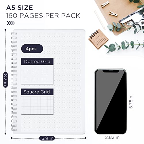 Irmanas Spiral Notebook, 4 Pack Dot Grid Notebooks 5.7″ x 8.3″, Bullet Dotted Journal, 640 Pages, Cute College School Supplies Notebooks for Work, Aesthetic Gift Office Supplies for Study and Notes