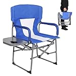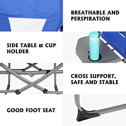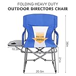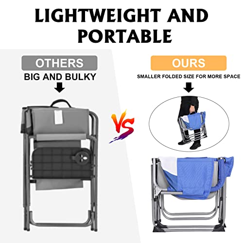 KABOER Camping Folding Director Chair Heavy Duty Lawn Chair with Side Table for Adults Outside,Portable Mesh Back Compact Chair for Outdoor,Lawn,Sports,Fishing,Picnic, Supports 300lbs(Blue)