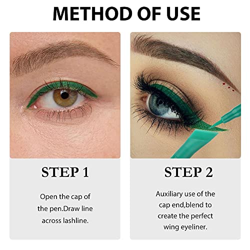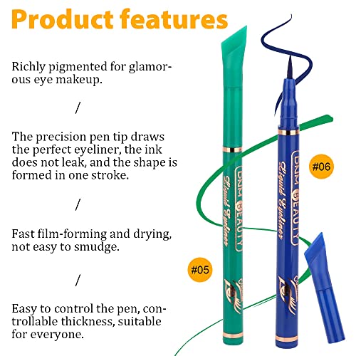 Kaely 2Pcs Green Blue Liquid Wing Eyeliner Stamp Eye Pencil Makeup Sets Waterproof Colored Color Eye Liners Stamps Shapes delineador de ojos contra el agua delineadores de colores para ojos 5&6