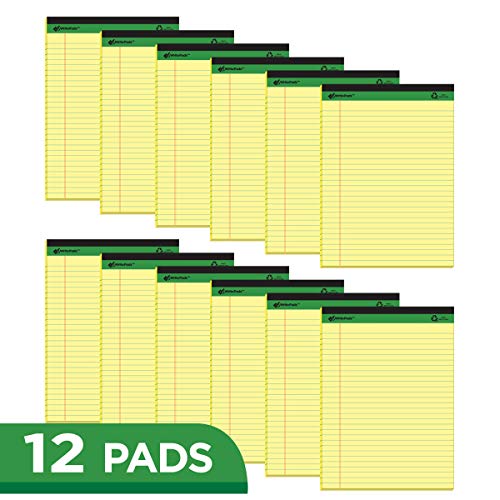KAISA Legal Pads Writing Pads Recycled Paper, 8.5″x11.75″ Wide Ruled Perforated 50 sheets Notepads 8-1/2″x 11-3/4″ Writed Pad, Canary (Pack of 12pc) KSU-5668