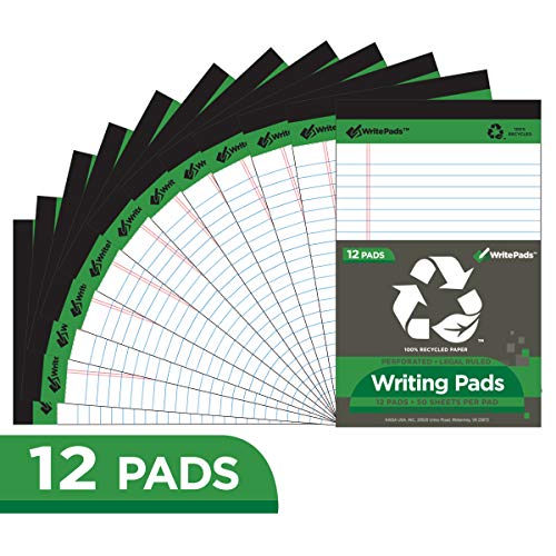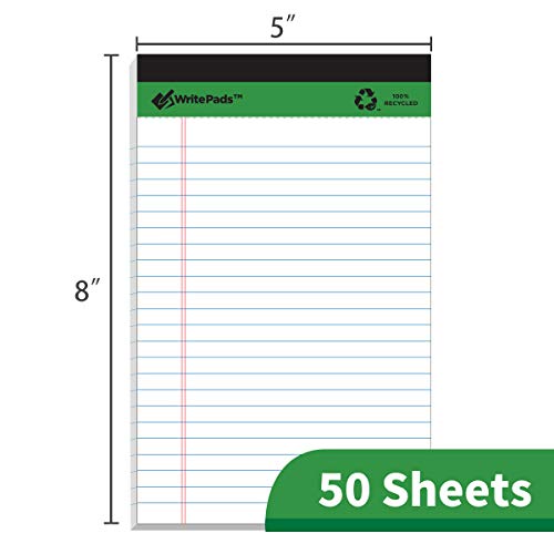 KAISA Small Legal Pads Recycled Paper Writing Pads, 50 sheets College Ruled 5″x8″ Legal Ruled Perforated Writed Pad Notepads, 5x8inch 12pads, KSU-5262