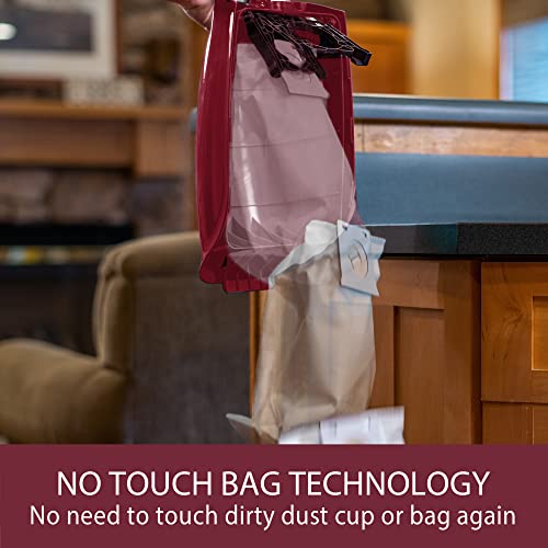 NO TOUCH BAG TECHNOLOGY: Eliminate the annoyingly dirty process of emptying and cleaning a full dust cup with the press of a single button to get rid of your dirt and debris. Hands free operation and self-sealing bags keep your home environment clean – no touch and no messy cleanup!