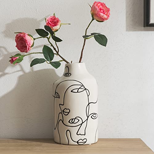 Abstract Ceramic Vase – This ceramic vase features a special design style with vivid face lines. Made with high-quality ceramic, it can be used as a decorative piece in your living room, matching well with exotic houseplants, winter florals, shelf decor, floor table decorations, fall decor, fireplace decor, and entry table decor. Despite its size and simple design, it is a pretty handy ceramic decor.