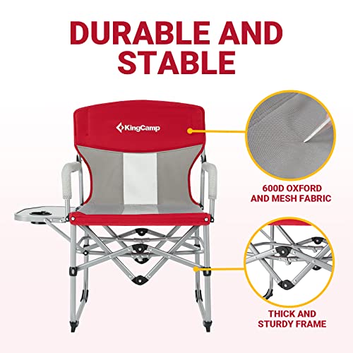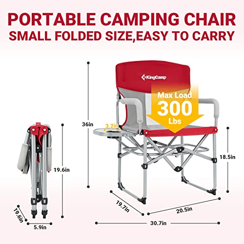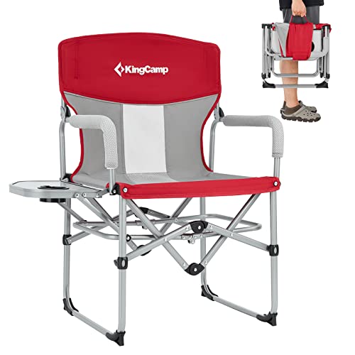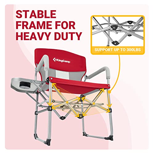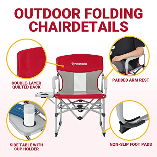 KingCamp Camping Chairs for Adults Folding Chairs Camping Directors Chair with Side Table Heavy Duty Camping Chairs Supports 300lbs for Outdoor, Camp, Lawn, Trip(Wine/Grey)