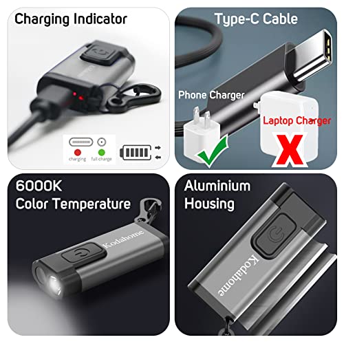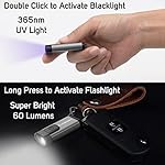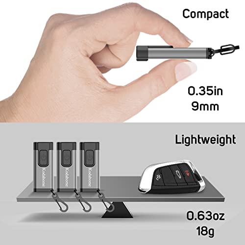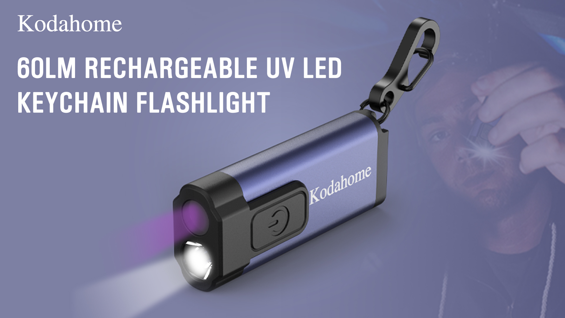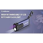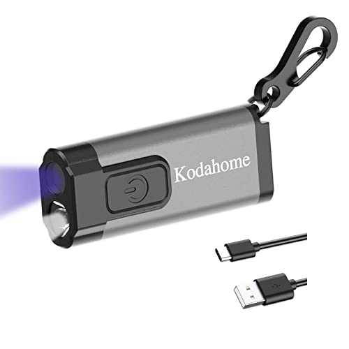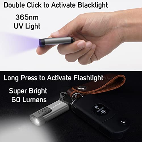 Kodahome Rechargeable Keychain LED Flashlight Plus UV Blacklight, 60lm EDC Pocket Keyring Light for Camping Hiking, 365nm Black Light Detector for Pet Urine Stains, USB C, Super Bright (Grey)