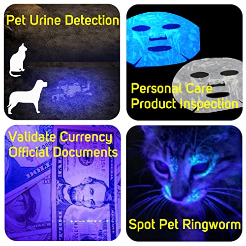 365nm UV Light and Great Practicality: Quick check the invisible stains as pet urine detector for dog cat training; Check out rest room rest room hotel motel room, currency, scorpions, minerals; even some industrial applications.
