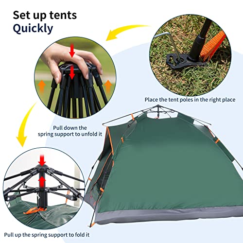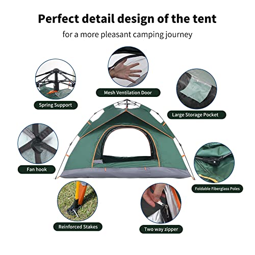 【Instant Pop-up Tent】. Our3-4 person camping tent uses an advanced automatic hydraulic system with high resilience and durability. The circle of relatives tent can also be set up quickly in minutes, disassembled and assembled easily by one person.