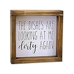 FARMHOUSE INSPIRED-Sign features pure white background and black text. Frames are stained a beautiful dark-walnut wood stain. Just add a little farmhouse charm to your home decor : CUTE MINI SIGN- This small sign measures 7×7 inch. Looks so cute above your kitchen sink. A perfect addtion to your modern farmhouse kitchen.: PERFECT GIFT -Gift this cute mini sign to your mom or your friends they will simply love it : READY TO HANG-All of our signs come with sawtooth hangers on back for easy hanging or stands on its own on a shelf or table.