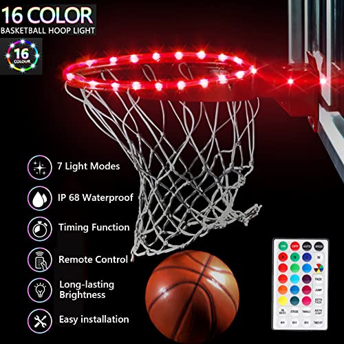 LED Basketball Hoop Light, Waterproof Super Bright Basketball Rim Lights,Remote Control 16 Colors and 7 Lighting Flicker Change, for Night Outdoor Basketball Games