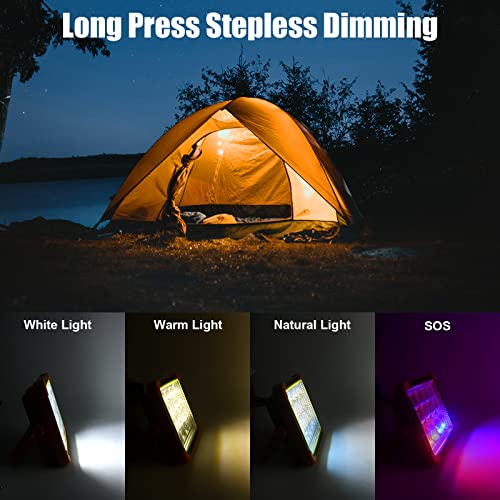🔥【 Adjustable Brightness and 4 Lighting Modes】Emergency light LED battery is equipped with 292 LED beads and has a power of 100 W. Provid 10000 lumens brightness. It has 4 light modes and long press to adjust the brightness, warm light, white light, warm and white, warning flash to provide camping, hanging tent lights, night work and a wide range of activities in the dark.