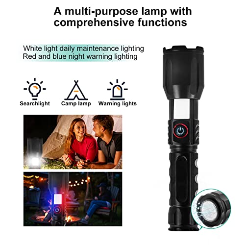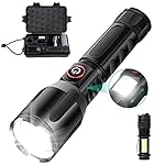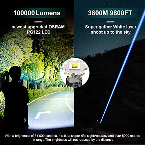 ✅【Rechargeable flashlights high lumens】utilizes newest upgraded OSRAM PG122 LED, which provides powerful beam and 10 times brighter than the normal flashlight.Bright flashlight high output up to 90000 lumen. Irradiation distance up to 3000m/9800FT, and the service life is up to 120,000 hours.