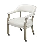 LEEMTORIG Dining Chairs with Casters and Arms, Accent Kitchen Table Chairs with Wheels, Roller Poker Table Chairs, Wooden Game Table Chairs, Captains Chair, Grey Legs & Ivory SY-1318-WT
