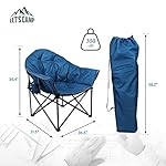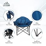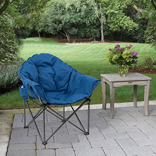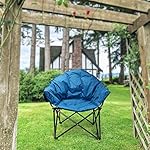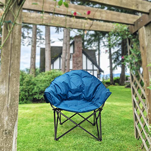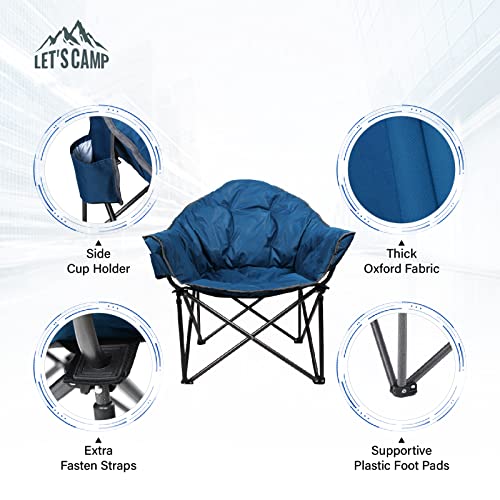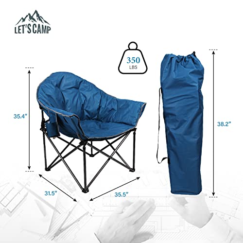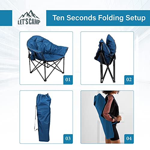 LET’S CAMP Heavy-Duty Oversize Camping Chair Round Moon Saucer Chair Padded with Cup Holder and Carry Bag Folding Chair,Navy