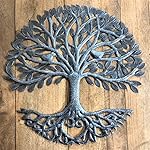 Love You, Haitian Tree of Life with Roots, Handmade from Recycled Barrels, Inspirational Family Wall Decor, Metal Sculpture 24 Inches Round