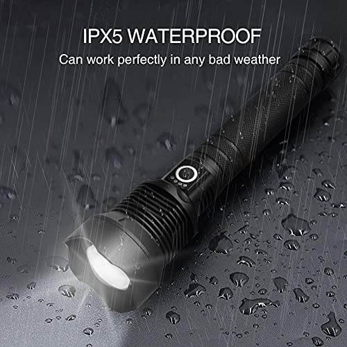 【Rechargeable Flashlight & Power Display】 Conveniently powered for hours with two 5000 mAh rechargeable ΒATTERY. Built in Mrico input port, allows you charging the flashlight conveniently. In addition, rechargeable flashlights have a power display function, so that you can see the power at a glance.