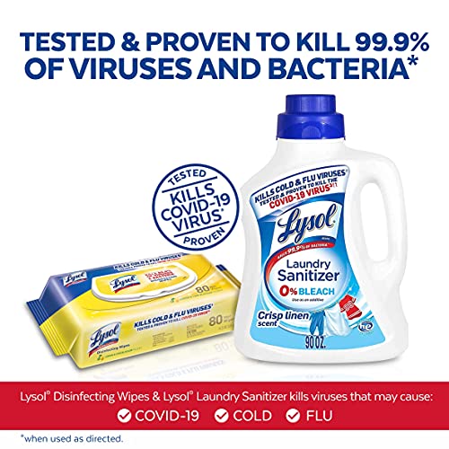 Lysol Disinfectant Multi-Surface Antibacterial Handi-Pack Cleaning Wipes, Lemon and Lime Blossom, 480 Count (Pack of 6) and Laundry Sanitizer Additive, Crisp Linen, 90oz