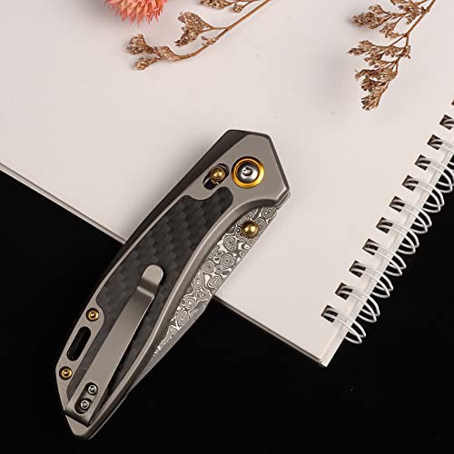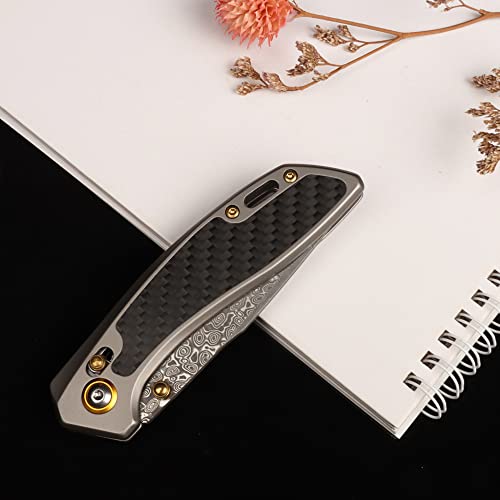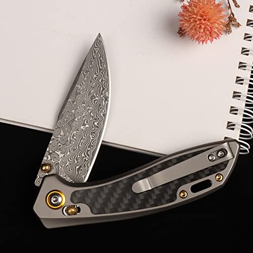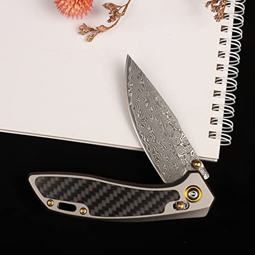 MASALONG Kni256 Pocket Knife, EDC Folding Knives, 3.77″VG10 Damascus Blade, Carbon Fiber Alloy Steel Handle for Tactical Survival Outdoor