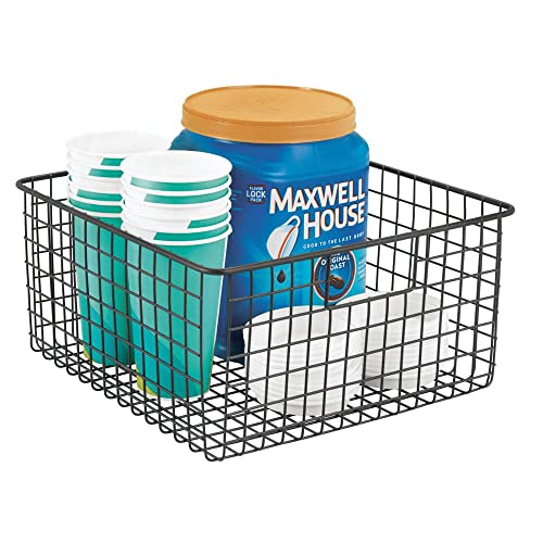 mDesign Farmhouse Decor Metal Wire Food Organizer Storage Bin Baskets with Handles for Kitchen Cabinets, Pantry, Bathroom, Laundry Room, Closets, Garage – 8 Pack – Black
