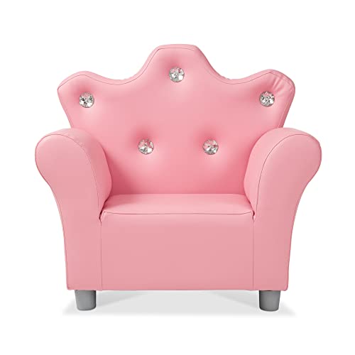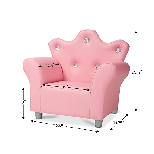 Melissa & Doug Pink Faux Leather Child’s Crown-Back Armchair (Kid’s Furniture) – Princess Chair For Toddlers, Children’s Furniture, Pink Chair For Kids