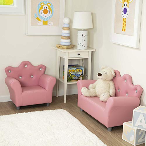 COMFY KID-SIZED ARMCHAIR: The Melissa & Doug Child’s Crown Armchair is a comfy and quality-built chair for toddlers and preschoolers. This Amazon-Exclusive armchair is sold in pink faux leather.
