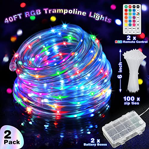 LED Trampoline Lights, 2 Pack 40FT 120 LEDs 8 Modes Battery Powered RGB Trampoline Strip Lights