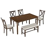 6-Piece Dining Table Set: This Rectangular dining table set gives 4 wooden dining chairs, 1 dining table, and 1 fabulous dining bench which can fully accommodate your Circle of relatives. Offer a touch of elegance in your dining area with our wooden dining table set.