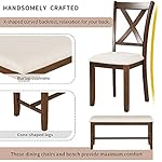 Handsomely Crafted: These dining chairs and bench can bring you a fantastic relaxing experience because they feature an “X”-shaped curved backrest, burlap cushions, and cone-shaped legs. This dining set provides maximum comfort and relaxation for your back.