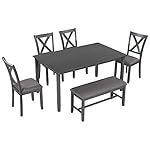 6-Piece Dining Table Set: This Rectangular dining table set gives 4 wooden dining chairs, 1 dining table, and 1 fabulous dining bench which can fully accommodate your Circle of relatives. Offer a touch of elegance for your dining area with our wooden dining table set.