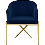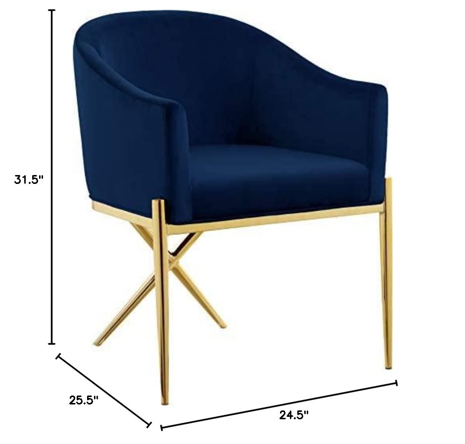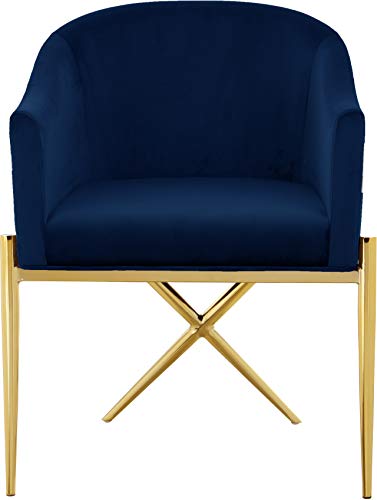 Meridian Furniture Xavier Collection Modern | Contemporary Velvet Upholstered Dining Chair with Sturdy Steel X Shaped Legs, 25.5″ W x 24.5″ D x 31.5″ H, Navy