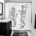 Mermaid Shower Curtain for Gothic Bathroom Decor- Gothic Shower Curtain for Mermaid Bathroom Decor – Water Resistant, Anti-Rust Metal Grommets, 12 Metal Hooks – Black & White Tasseled