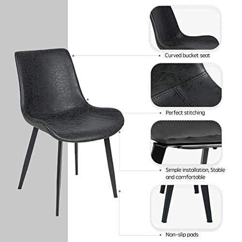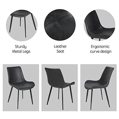 Miereirl Dining Chairs Set of 4 with PU Cushion Mid Century Modern Metel Legs for Indoor Kitchen & Dining Room Chairs Comfortable Chairs Suitable for Home Coffee Black