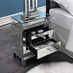 MIREO Mirrored Nightstand, Crystal End Table with 2-Drawers, Mirror Accent Silver Table, Bedroom Mini Cabinet from Furniture…