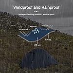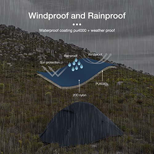 【WATERPROOF】: The Cloud up 20D tent polyester rain fly & bathtub with a PU 4000 coating is extremely firm and waterproof. Our weatherproof material with factory-sealed seams assists in keeping you bone-dry in extreme weather conditions.