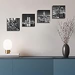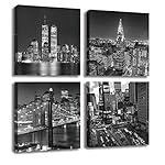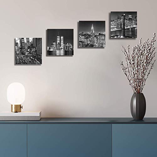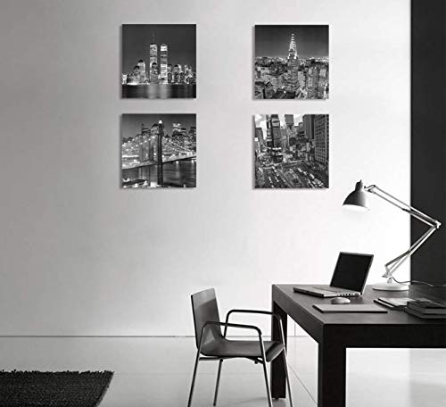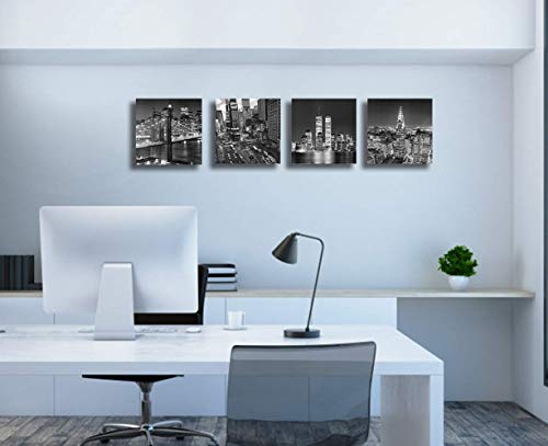 New York City Canvas Wall Art Print Black and White Brooklyn Bridge,Empire State Building Wall Art Modern Giclee Artwork for Office Home Decor 14x 14inch