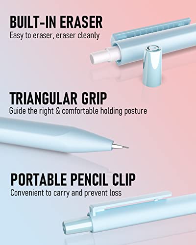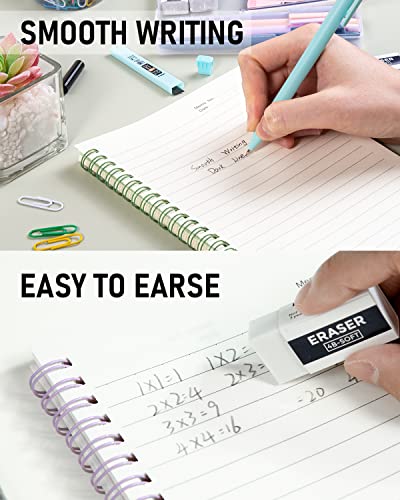 【Dark & Smooth Writing】: Pre-loaded with lead,never needs sharpening, is super strong & smooth, produces a clear dark line, and come with erasers that are easy to erase without traces.