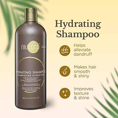 NIUCOCO Anti Dandruff Vegan Natural Hydrating Shampoo for Dry and Itchy Scalp, Coconut for Damaged Hair with Coconut Oil & Vitamin E, 400 ml, Pack of 2