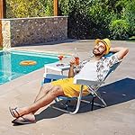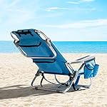 【COMFORTABLE SEATING】Made of premium rust resistant aluminum frame and waterproof 600D polyester fabric, the beach chair may also be long time used at outdoor. Food pad adds stability. Adapt to different ground. Removable headrest for more loosen up when lying flat