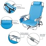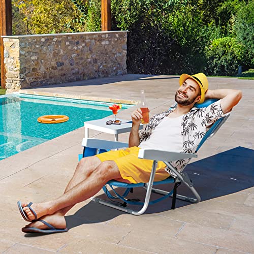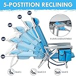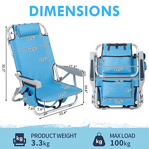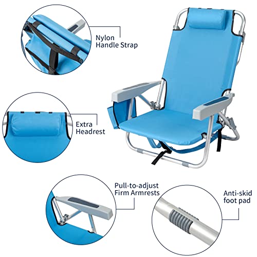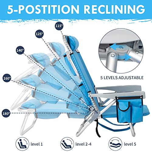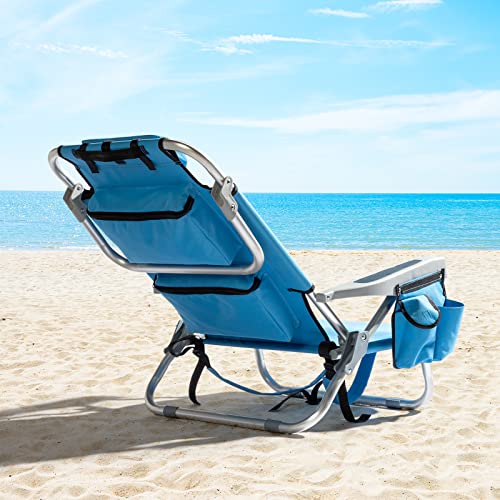 Outvita Backpack Beach Chair, 5 Level Adjustable Positions Beach Chair with Back Storage Bag, Cooler Pouch and Side Bags for Beach Poolside Lawn (Low)