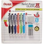 Pentel Twist-Erase Click Mechanical Pencil Set – 6 Mechanical Pencils, 6 Extra Erasers, 3 Tubes of Lead Refills
