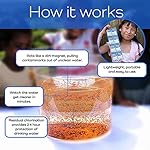 Clean, drinkable water that tastes good. A unique formula works by a combination of flocculation and disinfection. It removes waterborne bacteria and other pollutants and is eco friendly.